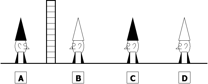 know that between them are 4 hats, 2 x black and 2 x white, but they do not